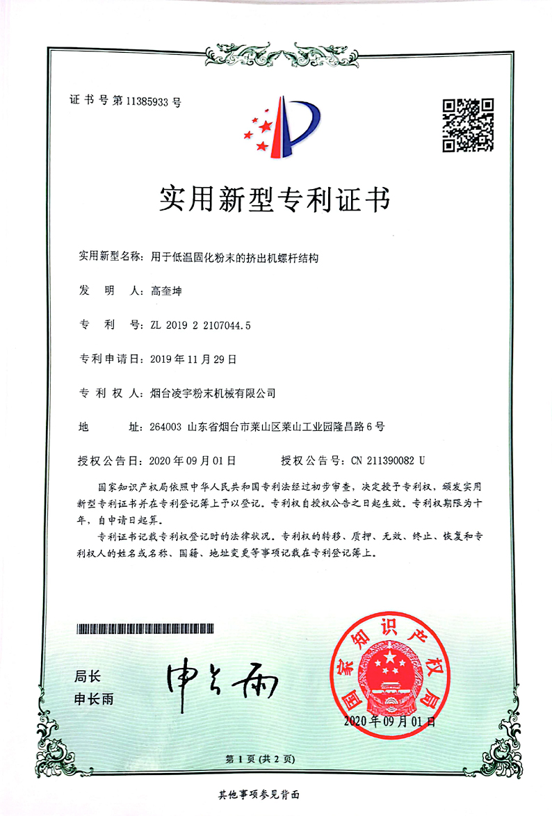 煙臺凌宇機械有限公司成立。主營粉末涂料成套制粉設備,包括混合機,擠出機,壓片機,磨粉機及實驗室設備等,提供最佳的粉末涂料解決方案。