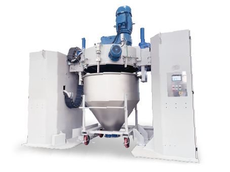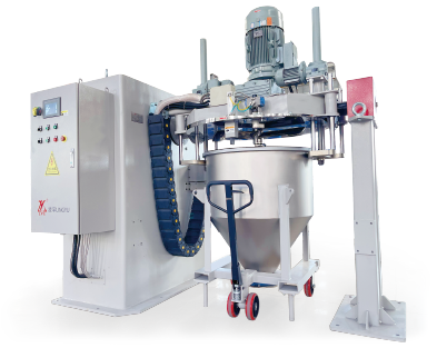 LCM系列翻轉(zhuǎn)式自動混合機LCM系列混合機采用可移動式料斗,適用于各種粉末及粒狀材料的混合攪拌。裝有待混合原料的料斗推到工位后,自動控制系統(tǒng)將其提升,與攪拌頭安全鎖定。料斗與攪拌頭一起翻轉(zhuǎn)180度