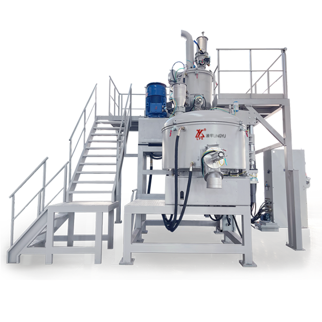 該設備混料罐采用惰性氣體吹洗,配有防爆系統和雙重密封 系統,邦定罐和冷卻罐配有夾層水冷系統,罐體采用大圓弧設 計,折流板的角度和高低可任意調節,自潔性好,升溫均勻。