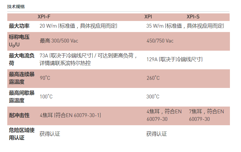 瑞侃進口 XPI-NH串聯(lián)恒功率伴熱線技術(shù)規(guī)格: